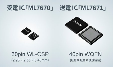 ローム株式会社(本社:京都市)は、スマートリングやスマートバンドなどの小型ウェアラブル機器やスマートペンなどの小型周辺デバイス向けに、近距離非接触通信を行う無線技術(NFC)に対応したワイヤレス給電ICチップセット「ML7670(受電)」「ML7671(送電)」を開発しました。