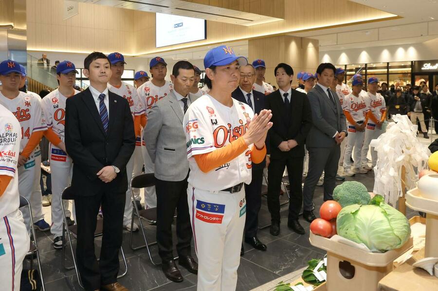 選手を代表し、高卒ルーキー石山愛輝投手(新潟市西蒲区出身、中越高出)が「先輩方と協力して新潟を盛り上げられるよう頑張る」とあいさつした。