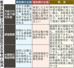 水俣病を巡る国の認定の在り方に、司法から再び異議が突きつけられた。新潟水俣病第2次行政認定訴訟で12日、原告8人全員を水俣病と認めた新潟地裁判決は、国の認定基準に沿ったとする県、新潟市の審査を「違法」と明確に否定。2017年の第1次行政認定訴訟の東京高裁判決に続く原告側の完全勝訴で、国に認定基準の再考を促す内容となった。弁護団は「今度こそ適法な審査を」と訴え、県と市に控訴断念を求める構えだ。