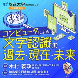 放送大学徳島学習センターは、2026年3月21日(土)、徳島県立図書館において講演会「コンピュータによる文字認識の過去・現在・未来」を開催します。