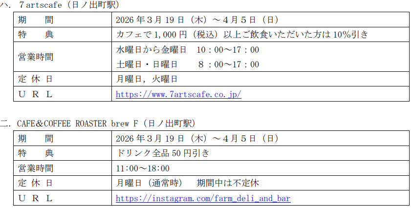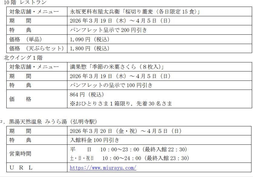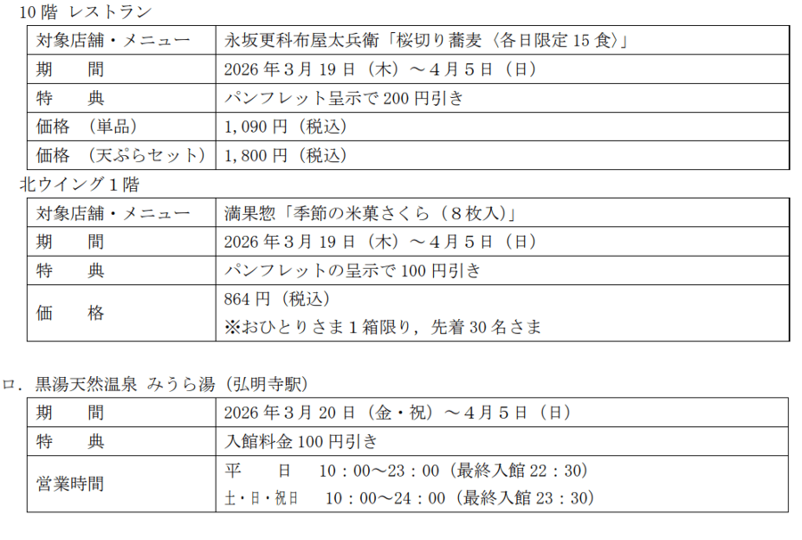2026年3月19日(木)~4月5日(日 )※一部対象期間が異なる施設がございます。