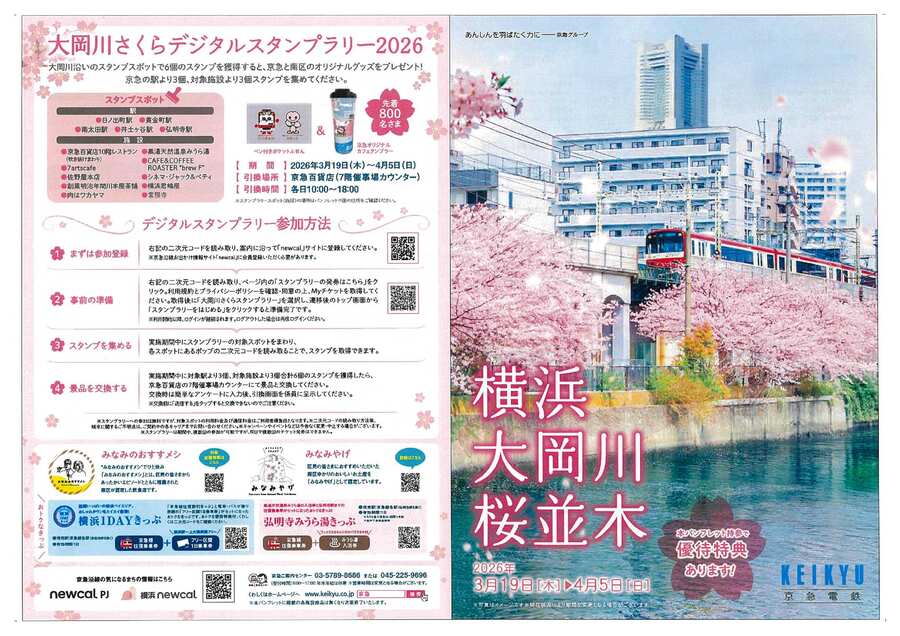 本キャンペーンは,3月21日(土)・22日(日)に横浜市南区が地域と共催する「第3回みなみ桜まつり2026」と官民連携で開催するもので,キャンペーン期間中は,京急電鉄ホームページでの開花状況のライブ配信や,大岡川さくらデジタルスタンプラリーを開催いたします。