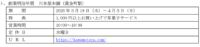 開催日時: 2026年3月20日(金・祝)~4月5日(日)18:00~21:00