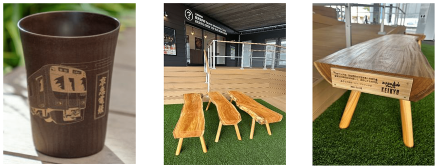 ・森林(もり)のベンチ:間伐材由来の木製のベンチを駅や駅前ひろばに設置