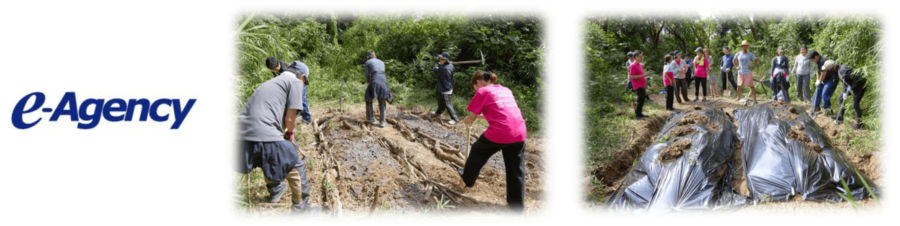 株式会社イー・エージェンシーの発案で始まりました。「菌ちゃん農法」と言われる菌糸を育てる土づくりをしています。上手に土ができれば,今年からよい畑になるでしょう。