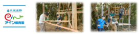 アイン保育園メンバーはじめ,興味があるメンバーが集まり,その場の即興で工事がなされていき徐々に高くなっています。現在,3階部分までできあがっており,工事が続いています。