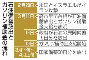 ・政府、16日にも石油備蓄放出 ガソリン補助金19日に再開、価格抑制へ