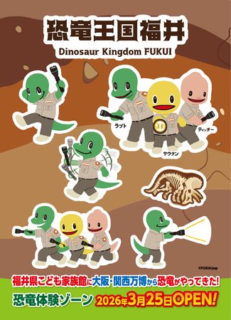 福井県は、大阪・関西万博で連日行列が絶えないほどの人気となった福井県ゾーン「恐竜王国福井」を、万博閉幕後の利活用として福井県こども家族館(おおい町)へ移設します。恐竜化石のバーチャル発掘体験や、恐竜時代から現在へ続く1.2億年の時空の旅をVR体験できる4面シアターといったコンテンツで、万博時よりも発掘体験の化石が大型化するなど進化を遂げた内容で楽しんでいただけます。運用初日の2026年3月25日(水)は万博公式キャラクター「ミャクミャク」とのグリーティングなど、オープンを記念したイベントも行います 。