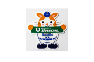商品は,横浜DeNAベイスターズのキーカラーを背景に,もとまちユニオンロゴにユニオンバッグを持ったDB.スターマンをあしらったフェイスタオルとキーホルダー,もとまちユニオンロゴを掲げたDB.スターマンのステッカーの3アイテムとなります。