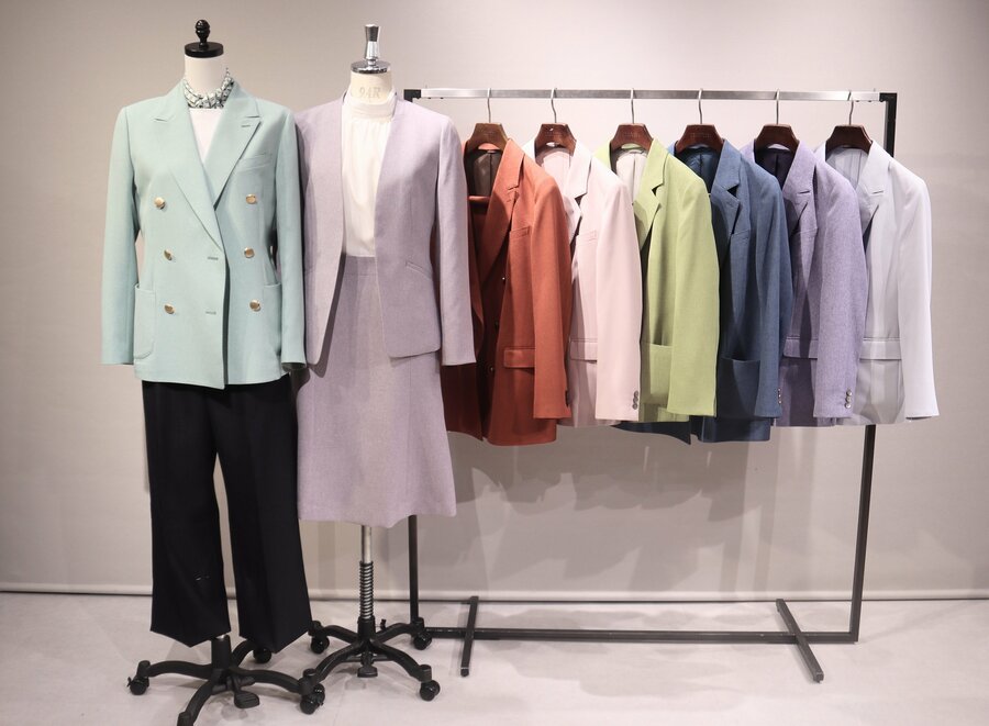 これまで展開してきた、明るいブルーや白といった華やかな印象の生地は、関西エリアの店舗を中心に好評をいただいています。そのような中で一部のお客さまからは、「他にももっとカラフルな色でスーツをつくりたい」といった声もあがるようになってきました。これは、オフィスウエアの多様化が進んだことで、職場によっては鮮やかな色のビジネスウエアも受け入れられてきているからだと考えます。今回の生地は、ビジネスウエアとしての品格を保ちつつ、仕事への活力をもらえるような絶妙な色味にもこだわりました。このスーツやジャケットが、働くモチベーションアップにつながれば嬉しいです。