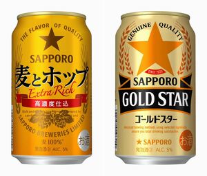 サッポロビールは18日、第三のビールの「麦とホップ」と「GOLD STAR(ゴールドスター)」の仕様を変更し、通常のビールとして発売すると発表した。10月の酒税改正でビール類の税率が統一化されることに対応し、麦芽の比率などを変えて割安なビールとして売り出す。変更する具体的な時期は未定としている。