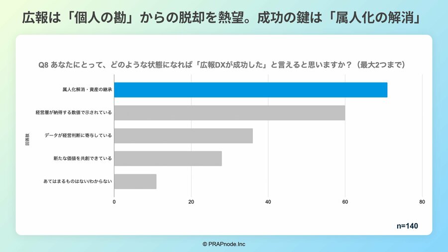 広報・PRのデジタルトランスフォーメーション(DX)を推進するプラップノード株式会社(本社:東京都中央区、代表取締役:渡辺幸光)は、広報・PR従事者140名を対象に「広報DXに関する実態調査」を実施いたしました。