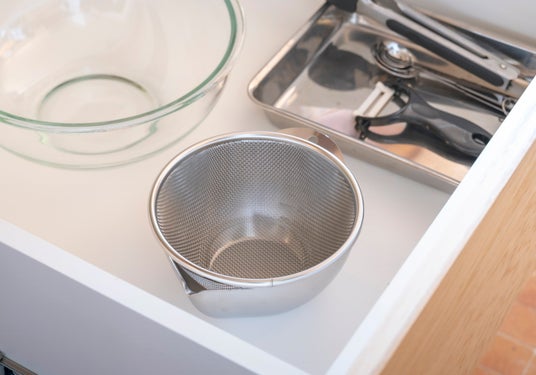 ボウルにフィットする設計で、野菜の水切りや冷凍食材の解凍、乾物の水戻しなどに便利。ざるとボウルを組み合わせれば、洗う・水切り・調理までをスムーズに行えます。野菜をサッと洗って水を切り、そのままボウルで和え物や下ごしらえも可能。毎日の調理を快適にします。