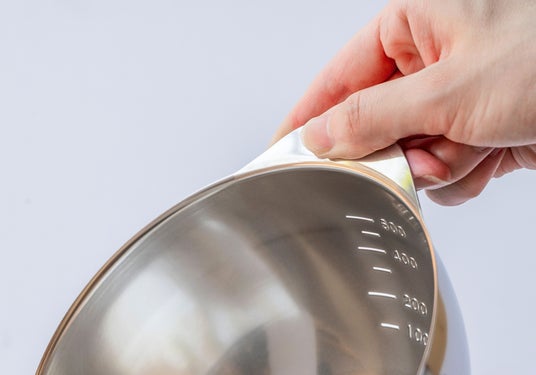 ボウル内側には目盛り付きで、計量カップを使わずにドレッシングや合わせダレなどを手軽に作ることができます。そのまま注げるので、洗い物を減らせるのも特長。食洗機対応で丸洗いできるため、毎日気軽に使えます。また、親指を添えられる縁は角度や持ちやすさにこだわった設計で、手にしっくり馴染み、調理中もボウルをしっかり支えられます。