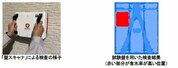 「壁スキャナ」は、壁厚が最大200㎜で通気層工法を採用した外壁(※5)を検査できる非破壊検査機です。測定した面において、壁内の水分を感知することができ、含水率の高いエリアを赤色で表すことができます。赤色で表示する部材や含水率は任意で設定でき、構造用合板であれば含水率20%以上を赤色で表示します。