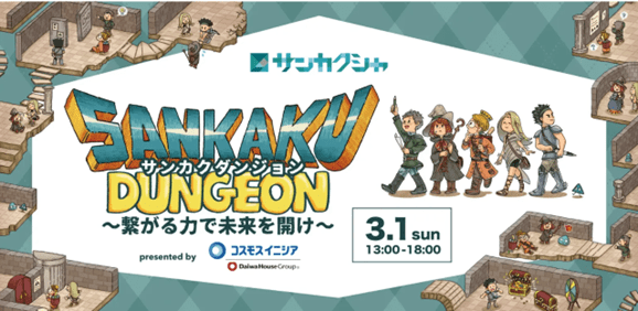 大和ハウスグループの株式会社コスモスイニシア(本社:東京都港区、社長:髙智 亮大朗)は、次世代への取り組み「Next Generation Challenge」の一環として、2026年3月1日(日)、若者の居場所づくりに取り組む特定非営利活動法人サンカクシャ主催のチャリティイベント「サンカクダンジョン~繋がる力で未来を開け~」に協賛企業として参加しました。