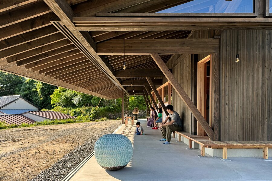 写真は「常滑の土間」。大きな差し掛け屋根の下に広がるコンクリートの土間は、夜間はガラス戸で仕切られ室内となり、日中は開放しギャラリースペースとして活用されています。写真提供:TEZUKA ARCHITECTS