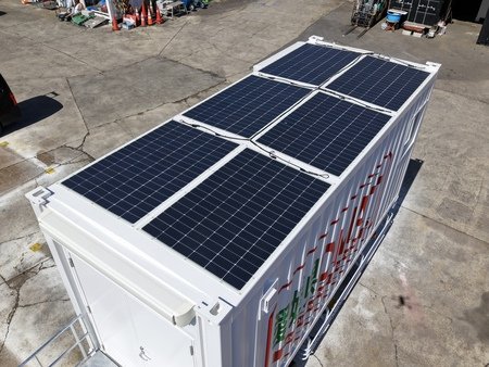 一般的に15kWh相当の蓄電池は100kg以上の一体型となり持ち運びが困難ですが、本構成では1台50kgに分割できるため、必要に応じてコンテナ外部に取り外して個別に活用することが可能です。ソーラーパネルからの充電にも対応しており、災害時の長期運用を支えます。