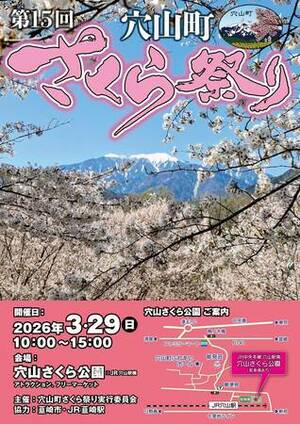 韮崎市穴山町にある穴山さくら公園で、「第15回穴山町さくら祭り」が開催されます。