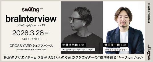 Swiingでは、クリエイターや地域企業の交流を目的としたトークイベント「braInterview」を開催しています。今回、法人化を記念し第10回の記念イベントを新オフィスにて開催します。