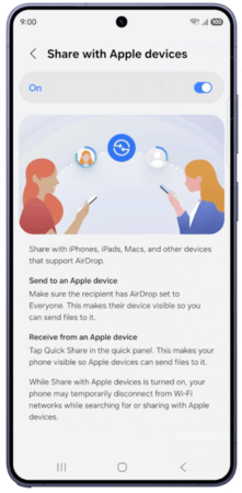 サムスン電子(韓国本社)は、「Samsung Galaxy S26シリーズ」より新たに「Quick Share」が「AirDrop」の対応を開始し、「Quick Share」を通じてデバイス間のコンテンツをより簡単かつシームレスに共有できるようにいたします。