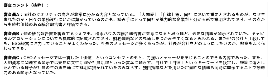 積水ハウス株式会社は、日本経済新聞社主催の第5回「日経統合報告書アワード2025」において、準グランプリを受賞しました。