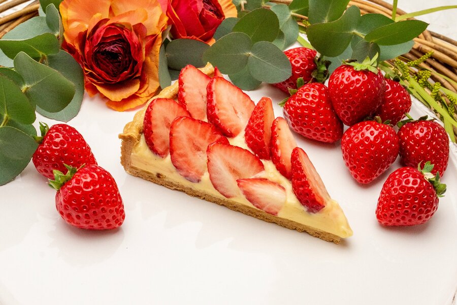 埼玉県オリジナル品種として栽培されている“あまりん”。際立つ甘さと果汁たっぷりでジューシーな果肉、鮮やかな赤と美しい形が特徴の高級イチゴです。バターたっぷりのパイ生地にカスタードクリームと“あまりん”を敷き詰めました。シンプルな組み合わせが“あまりん”本来の美味しさを引き立てます。