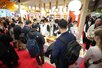 (写真:麻辣湯の試食に多くの来場者が集まり、ブースが賑わう様子)
