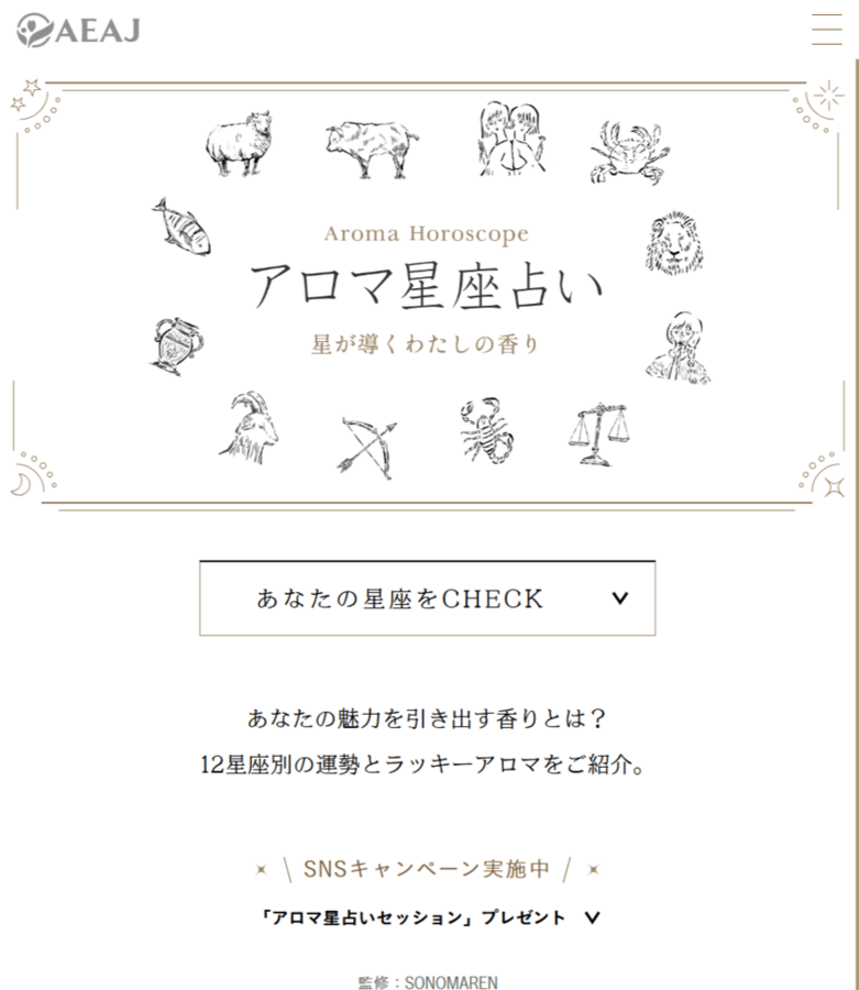 ◎「アロマ星座占い~星が導くわたしの香り」キャンペーン特設サイト