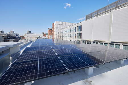 本建物は、地上3階建ての木造建築であり、高度な省エネ性能と太陽光発電による創エネを組み合わせることで、一次エネルギー消費量を実質75%以上削減する「Nearly ZEB」※を達成しています。都内において木造の大学施設がNearly ZEB認証を取得することは初の事例となります。