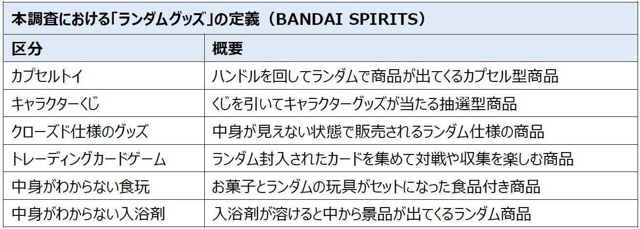 今回調査の対象とした「ランダムグッズ」の具体的な商品は後述。