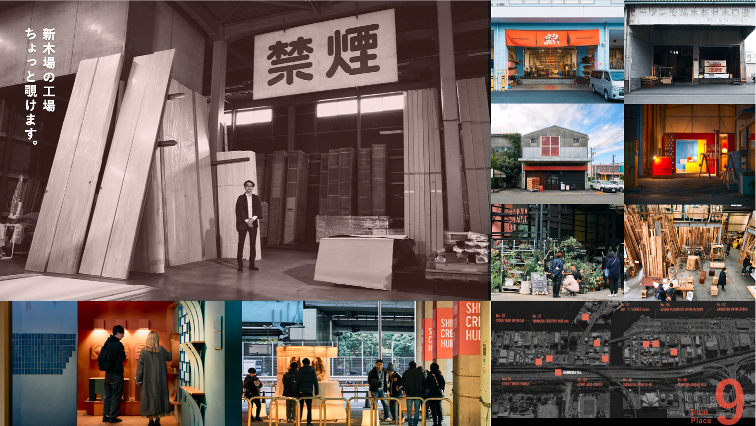 SHINKIBA CREATIVE HUBは、Studio コーと新木場にある榎戸材木店が中心となり、新木場の企業や工場とともに立ち上げた地域回遊型のプロジェクトです。木材産業の集積地として発展してきた新木場は、需要構造の変化や担い手不足などにより産業の転換期を迎えています。本プロジェクトでは、この街に積み重なってきた素材や技術、人々の営みに着目し、街の資源をひらく試みを行いました。
