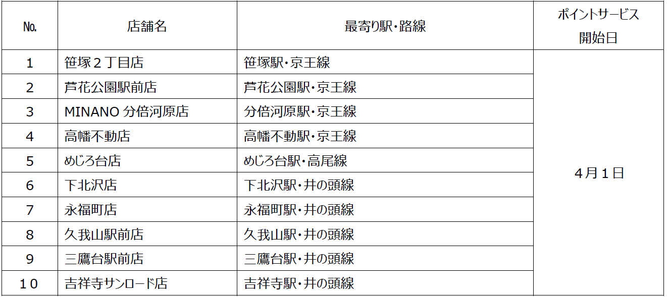 上記「マツモトキヨシ」京王ポイント新規加盟店舗一覧に記載の10店舗に、