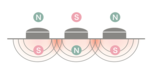 ・130ミリテスラの希土類永久磁石をN極S極交互配列で全周に配置(15.5㎝/25粒・17㎝/27粒)