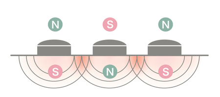血行を改善する磁気の効果を、より最大化するためにコラントッテ独自のN極S極交互配列で磁石を配置。磁力が繋がることで点ではなく面でより広範囲で磁力の効果が得られます。磁気治療器のパイオニアであるコラントッテが25年以上かけて培ってきた磁気研究が活かされています。