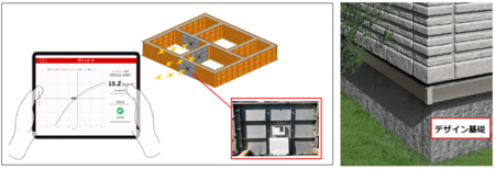 「SHセンサ型枠システム」イメージと設置写真 / 基礎工事完了後のデザイン基礎