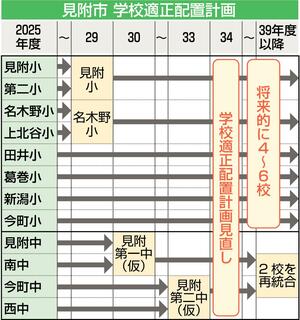 小学校は29年度に見附第二小を見附小に、上北谷小を名木野小に統合し、6校とする。田井小は小規模特認校とする。第二、上北谷、田井の3校は現在、複式学級が生じている。