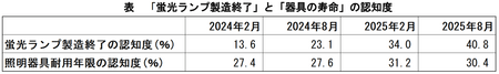 「蛍光ランプ製造終了」と「器具の寿命」の認知度