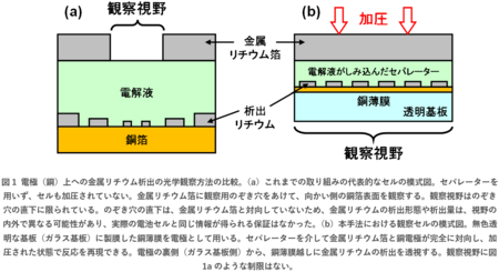 ・ 電池セル内部の加圧された界面で起こる充放電反応の様相を電極越しに目視することが可能に