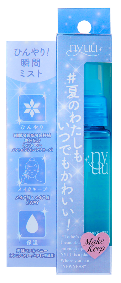 株式会社ドン・キホーテは、α世代向けの新しいコスメブランドとして「nyuu(ニュー)」を2026年2月に誕生させました。すでにCarry Heart series(アイシャドウ、リップ&チーク、リッププランパー)、4color keyring eyeshadow、UVエッセンスの5商品を全国のドン・キホーテ系列店舗(一部店舗を除く)にて好評発売中です。このたび新たにメイクキープミストクールを3月27日(金)より販売開始いたします。