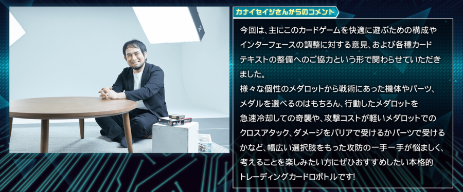 『メダロット』のカスタマイズ性と、カードゲーム特有の戦略性を高次元で融合させるため、アナログゲーム界の第一線で活躍する両氏の知見を導入しました。
