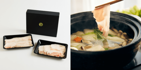 沖縄県の在来豚「アグー」。その純血統を守り続ける、又吉農園の自社ブランド「又吉アグー」。自然豊かな名護市やんばるの地で、成長ホルモン剤や抗生物質を使用せず、放牧に近い環境で健やかに育てられています。最大の特長は、ビール粕やパイン粕、自社栽培米など地元食材を配合した独自の飼料により生み出される圧倒的な旨味です。旨味成分(グルタミン酸)は一般的な西洋豚の約2.5倍を誇り、脂の融点は31.1度と低いため、口に含んだ瞬間とろけるまろやかな甘味が広がります。しゃぶしゃぶの際は、沸騰手前のお湯でさっと茹でてお召し上がりいただくのがおすすめです。バラとロースを食べ比べできるセットは、特別な日の食卓を華やかに彩ります。