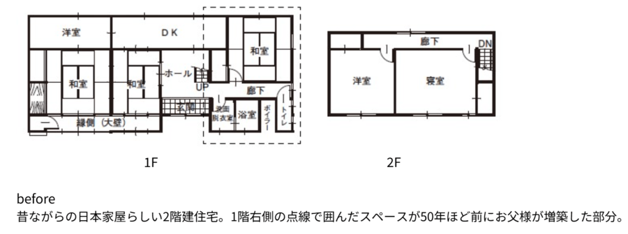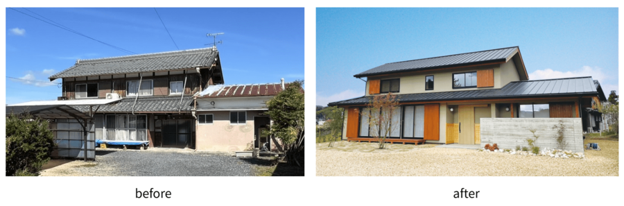森工務店の創業者であるお祖父様が昭和26年に建てた家、当時の写真。その後、お父様が増築され、リノベBeforeの写真となり、今回フルリノベーションし、現在の姿に。