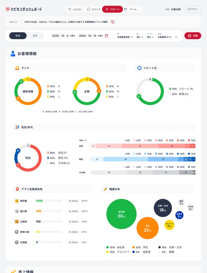 【お客様の属性・来店頻度などの情報を可視化する「リピートダッシュボード」】