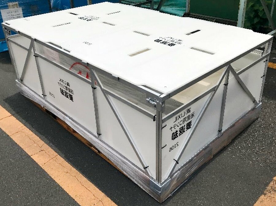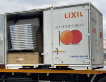 1995年から「リターナブルコンテナ」の導入をし、2023年には、保護フィルムの使用量を前年比2.5トンまで減らすことができました。コンテナに製品をまとめて納めることで、手積みで一つ一つ行っていた作業を減らし、大型トラックから現場に向かう小型トラックへの載せ替えもスムーズに行うことができ、物流の効率化にも貢献しています。