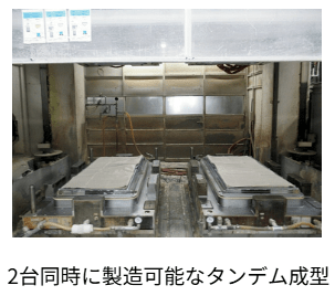 具体的な取り組みとしては、床材や浴槽の製造はプレス機を使用していますが、筑波工場と上野緑工場では2台同時に製造可能なタンデム成形を取り入れることで、製造効率をあげるだけでなく、エネルギー消費を抑えています。