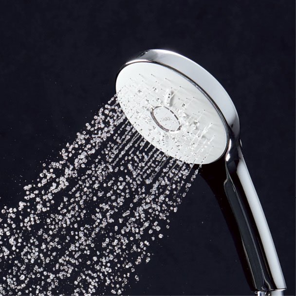 節水性能の高いシャワーヘッド「エコアクアシャワーSPA」は、水に空気を含ませることで手元で止水ができるスイッチ付きの場合、従来品より約50%の節水となります。また、お湯の使用量を減らせるので省エネにもつながります。