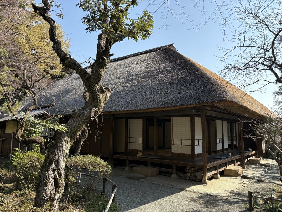また、多摩丘陵南東端に広がる百草園に東面して建ち、木造平屋建ての寄棟造で、平入り、茅葺きの建物です。北側を土間とする六間取の間取りで、正面に二間半の式台玄関を設けており、南側の和室に床脇のある床の間を備えています。近世の名主層の接客空間を現在は貸し室として使用されているため、江戸時代末期から明治前期までの多摩地域における上層民家の特徴を見ることができます。