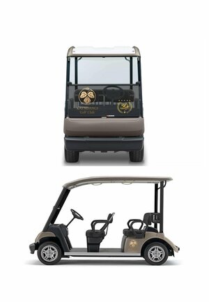 今回の記念ラッピングカートは、葛城ゴルフ倶楽部の50年間にわたる伝統と、井上誠一氏による戦略的で格調高いコースを象徴する、シックなデザインとカラーを採用しました。 車両の正面および側面には葛城ゴルフ俱楽部のシンボルマークを、正面には「50周年記念ロゴ」をあしらっています。