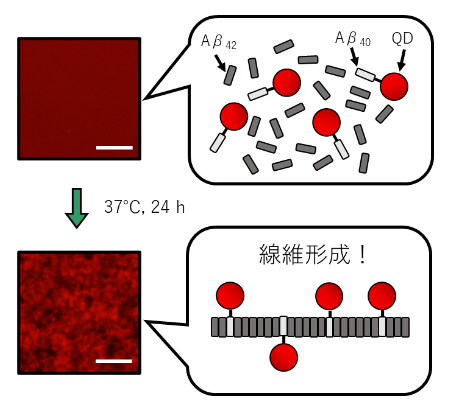 ・量子ドット(QD):蛍光性半導体ナノ結晶。タンパク質凝集のリアルタイム可視化に